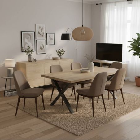 Table 170cm Aspect Bois Arizona Oak Piètement X Métal Noir de la gamme Arizona.