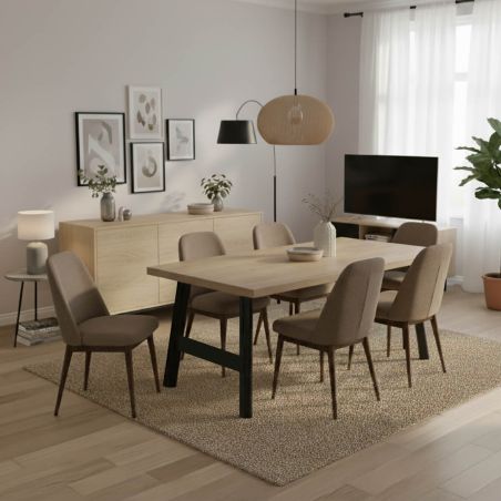Table 170cm Aspect Bois Arizona Oak Piètement Country Métal Noir de la gamme Arizona.