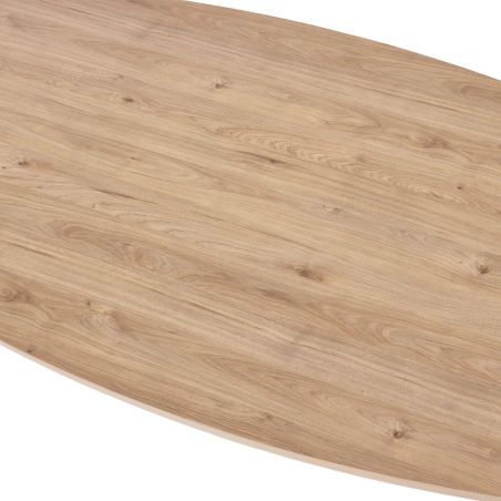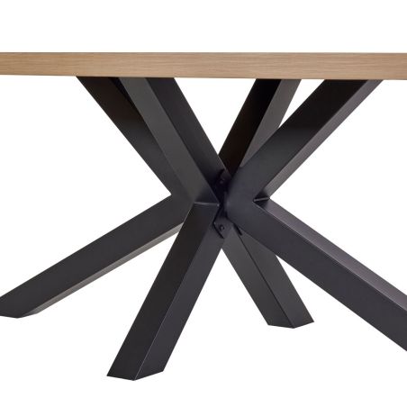 Table 210cm ovale aspect bois finition bois piètement étoile métal noir.
