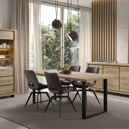Table 200cm Aspect Bois finition Hudson Oak Piètement U Métal Noir - HUDSON.