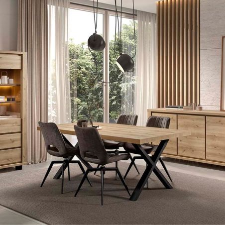 Table 230cm Aspect Bois finition Hudson Oak Piètement X Métal Noir - HUDSON.