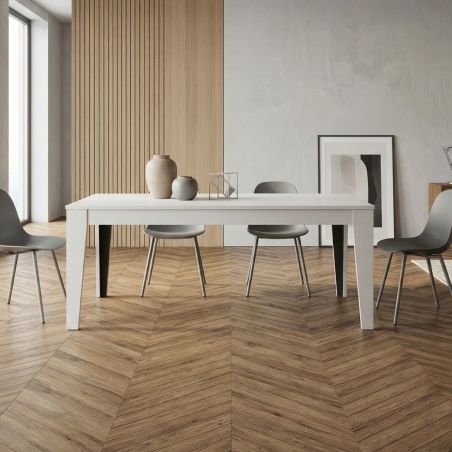 Table de repas 190cm laqué blanche pieds biseautés design - CARAT.