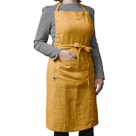 Tablier Ajustable avec Poche 70x85cm Lin Lavé Miel Margaux.