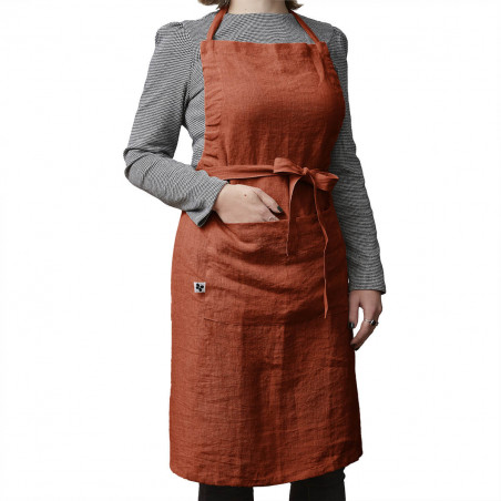 Tablier Ajustable avec Poche 70x85cm Lin Lavé Paprika Margaux.