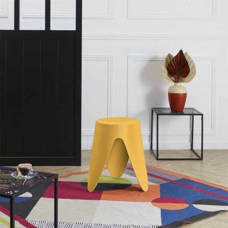 Tabouret Jaune Tulipe en Polypropylène 46 cm, empilable et conçu pour s'intégrer facilement dans tout intérieur grâce à son design compact et élégant.