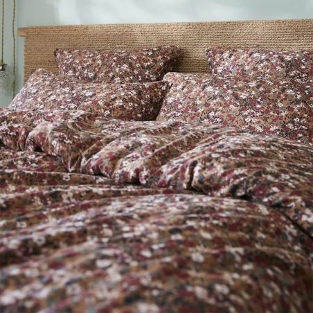 Taie d'Oreiller 60x60cm Gaze de Coton Fond Brun Motifs Fleurs de la gamme Adonis.