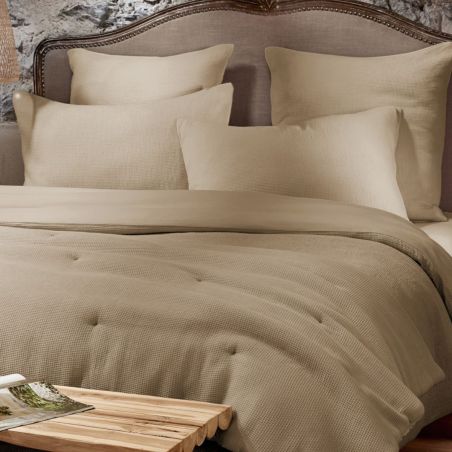 Taie d'oreiller 60x60cm en coton nid d'abeille coloris Ficelle - ALMARA.