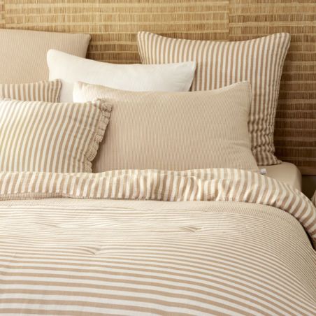 Taie d'oreiller 60x60cm gaze de coton tissé rayé beige - ROMELIA.