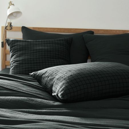 Taie d'Oreiller 60x60cm Gaze de Coton Sapin à Petits Carreaux - OUREA MOTIF.