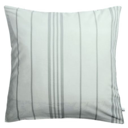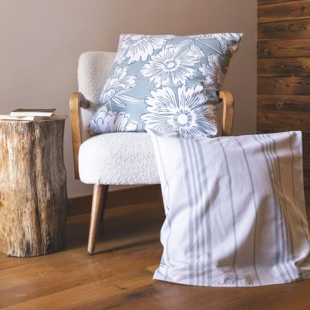 Taie d'oreiller 63x63cm coton imprimé recto floral verso rayé vert sauge et blanc - TAMIA.