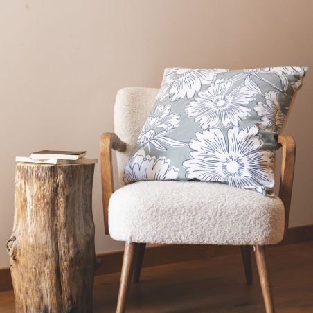 Insufflez une bouffée d'air frais et de poésie naturelle à votre chambre. Ses imprimés floraux généreux sur un fond vert sauge apaisant, et au verso ses rayures fines et authentiques, offrent un équilibre parfait entre caractère rustique et modernité épurée.