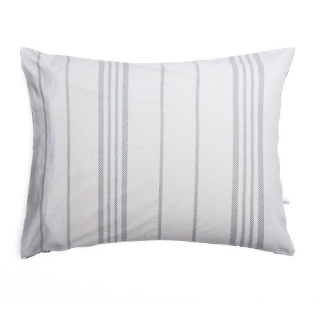 Taie d'oreiller 50x70cm coton imprimé recto floral verso rayé vert sauge et blanc - TAMIA.