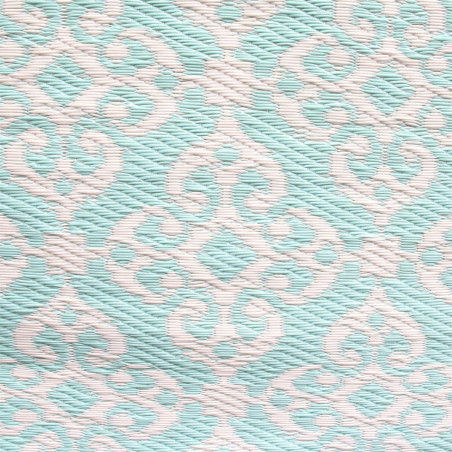 Tapis 120x180cm Intérieur/Extérieur Motif Ornemental Turquoise et Blanc.