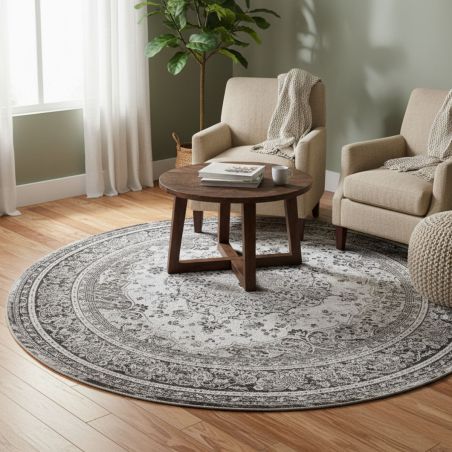 Tapis Rond Ø200cm avec Motifs Noirs de la gamme Colaba.
