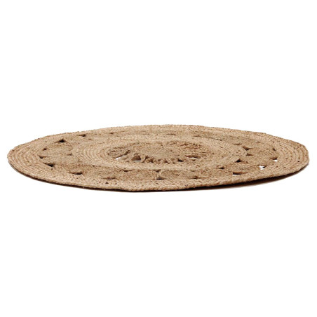 Tapis Rond Ø90cm en Jute Tressée Naturelle Ajourée.