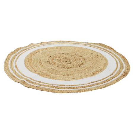 Tapis Rond Ø90cm en Jute Naturelle et Coton Blanc.