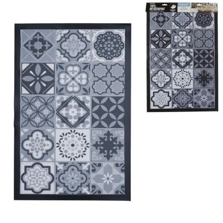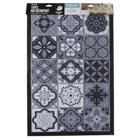 Tapis rectangulaire en PVC, effet carreaux de ciment pour un style intemporel et design.