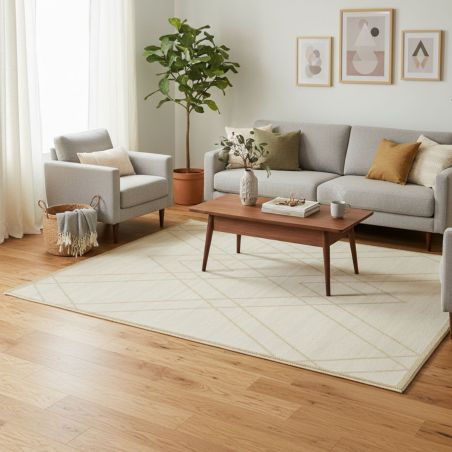 Tapis fil métallisé en polypropylène beige 150x200cm.