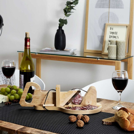 Trancheuse en bois d'hévéa et lame en acier inoxydable.