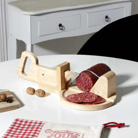 Trancheuse à Charcuterie Manuelle en Bois Ronde.