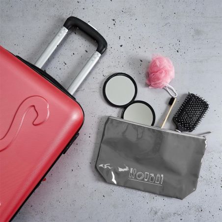 Trousse de toilette rectangulaire 23x36cm en plastique PVC gris avec fermeture eclair.