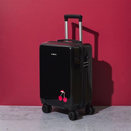 Valise Cabine Noire avec une Cerise 28L Rigide en Polycarbonate avec Roues Pivotantes 360° et Cadenas Sécurisé à Code