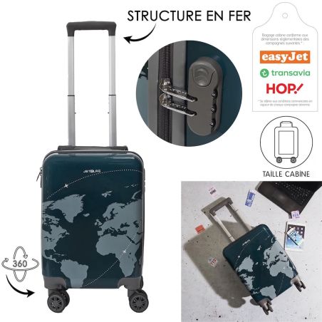 Valise cabine compacte avec un design unique mappemonde, capacité de 24L, idéale pour vos courts séjours ou déplacements professionnels.