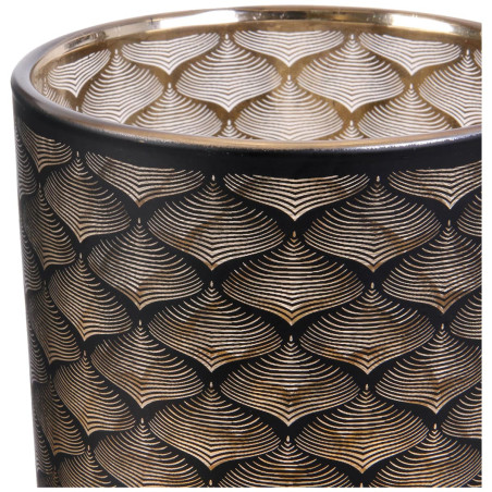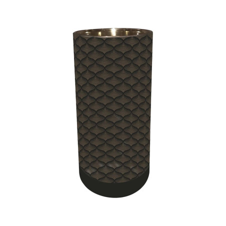 Vase Cylindrique en Verre Noir et Cuivre à Motifs.
