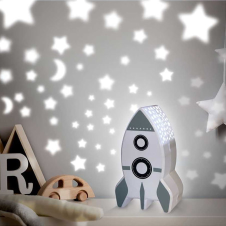 Offrez à votre enfant cette veilleuse de projection fusée.