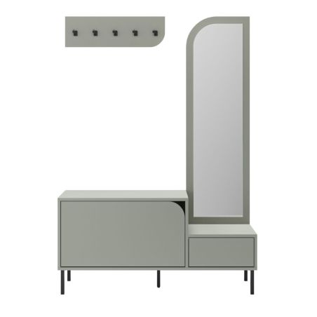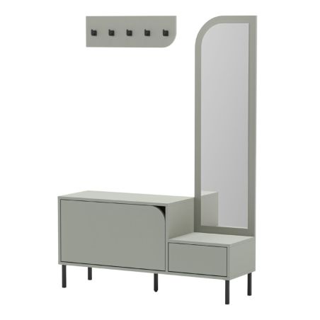 Faites de votre entrée un espace accueillant et organisé avec cet ensemble qui se distingue par ses formes organiques et arrondies. Le miroir en pied est surmonté d'une arche douce, faisant écho aux angles arrondis du caisson de rangement.