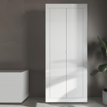 Penderie 2 portes avec 2 étagères Blanc Laqué Weiss - OTELLO.