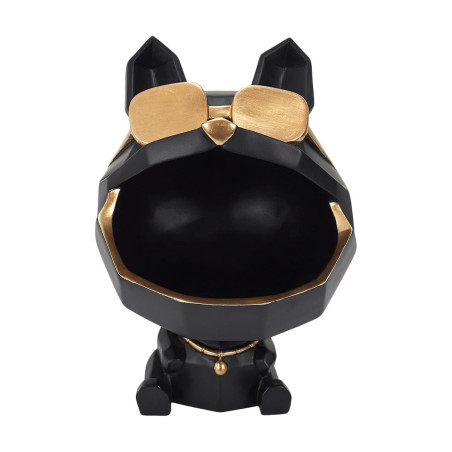 Vide-Poche Chien à Lunettes Géométrique Noir et Or.