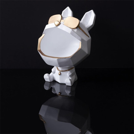 Vide-Poche Chien à Lunettes Géométrique Blanc et Or.