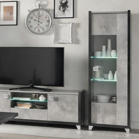 Vitrine 1 Porte Réversible Gris Aspect Béton de la gamme Hoffman.
