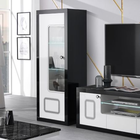 Vitrine 1 Porte Gauche Laqué Noir et Blanc de la gamme Robbie.