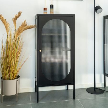Vitrine Basse 1 Porte Acier Noir et Verre Ondulé de la gamme Metos.