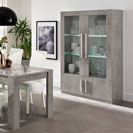 Vitrine 4 Portes Laquée Effet Marbre Poignées Métal avec Leds de la gamme Clark.