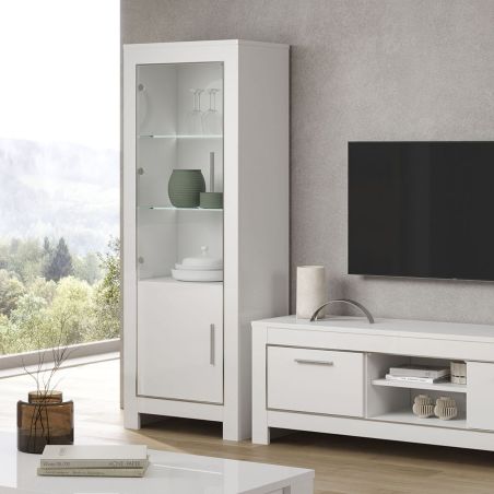 Vitrine Gauche Laquée Blanc Brillant avec Eclairage Led de la gamme Denae.