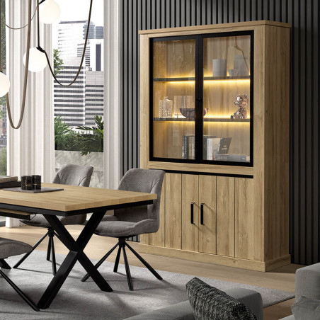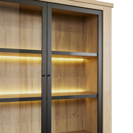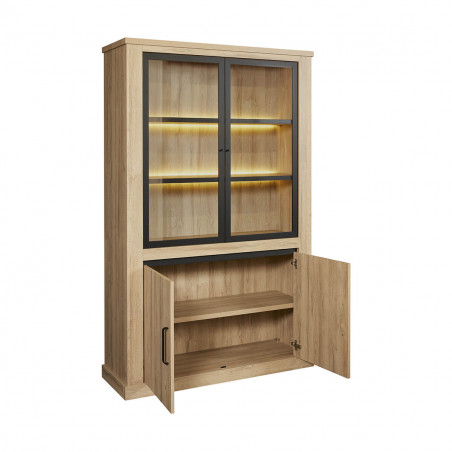 Argentier 4 Portes avec Leds Aspect Bois Chêne Clair Finition Frank de la gamme Lorenzo.