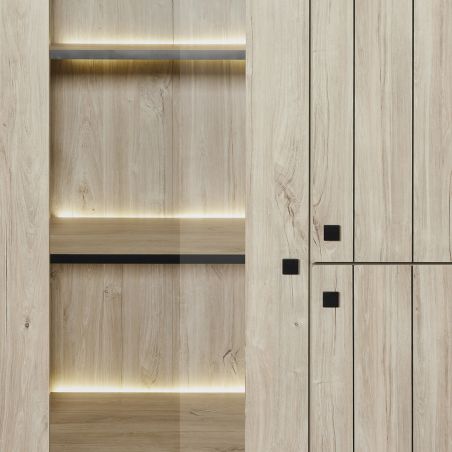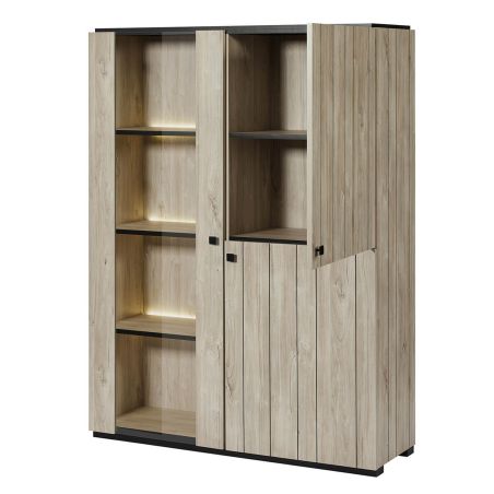 Argentier 3 portes dont 1 vitrée aspect lames de bois finition Beach de la gamme Thomas.